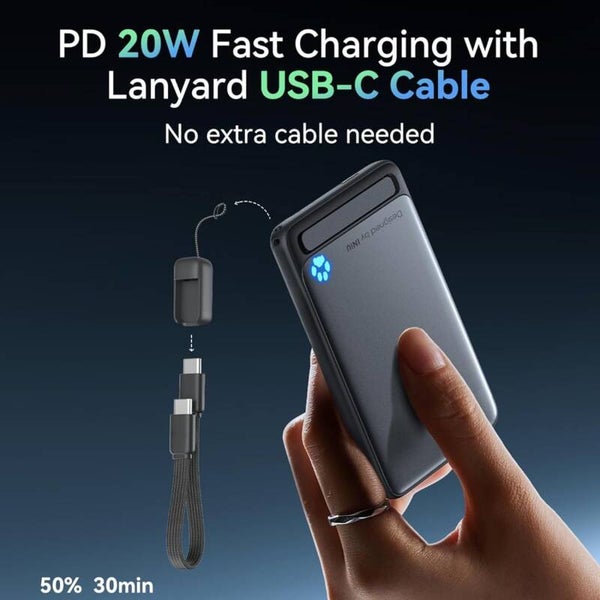 Caractéristiques générales : Catégorie Batterie externe magnétique / Power Bank 20000mAh Mise en place : Externe portable Appareils compatibles : Smartphones compatibles MagSafe et Qi Capacité : 20000 Milliampères-heure (mAh)Entrées : USB-CSorties : USB-C et charge sans fil magnétique Type de batterie : Lithium-polymère Indicateur du niveau de batterie : LED Puissance maximale : 20 Watts en filaire, 15 Watts en sans filBéquille intégrée pour usage mains libres Technologies : Charge rapide USB-C, Qi2, Power Delivery Résistance : Conception compacte et robuste