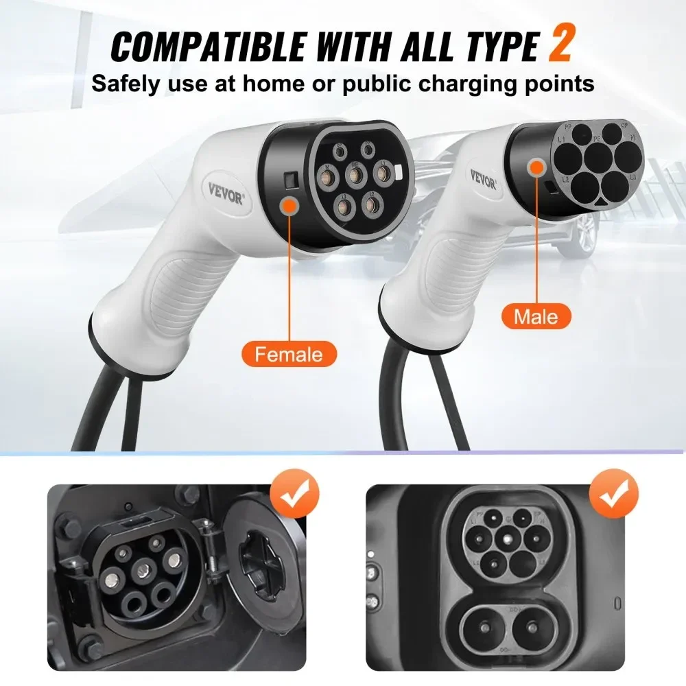 VEVOR Câble de Recharge EV de Type 2, 32 A, 22 kW, 7 m IP66