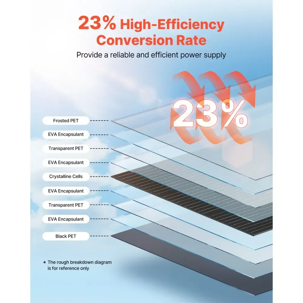 - Installation facile : Ce panneau solaire semi-flexible est doté de trous de fixation pré-percés pour une installation aisée. Il peut être fixé à l’aide de colliers de serrage sur des tentes, des toits, des voitures, des bateaux ou collé fermement sur la surface de montage