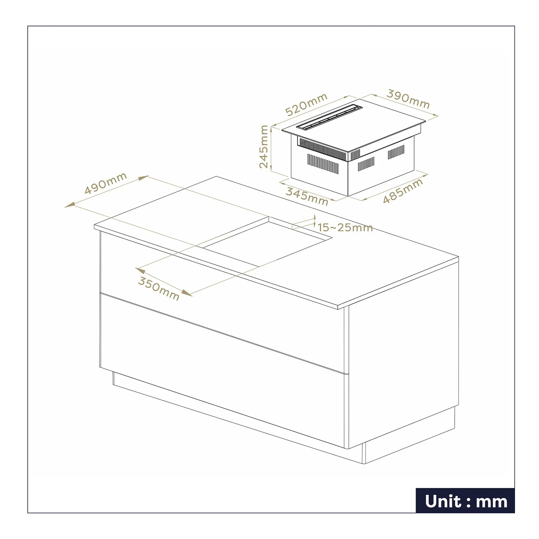 - Deux âmes en UNE : plaque à induction encastrable combinée à une hotte