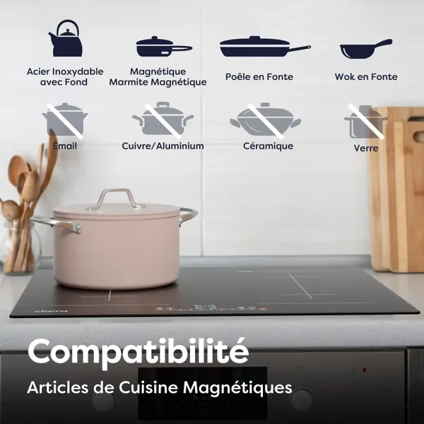 - Surface en matériau vitrocéramique : facile à nettoyer et résistant aux rayures