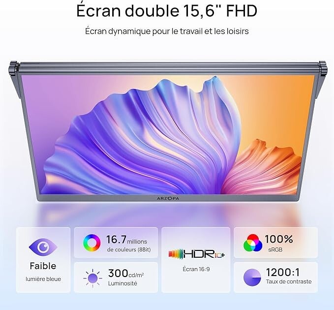 ARZOPA E1 Moniteur Portable Double 15,6" Écran Portable FHD