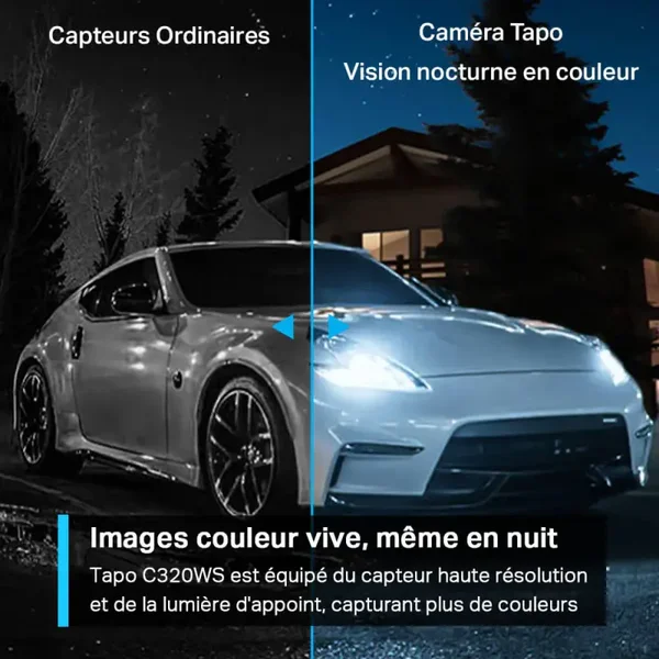 La caméra de surveillance extérieure Tapo C320WS offre une résolution QHD 2K et une vision nocturne en couleur pour sécuriser votre domicile. Elle se distingue par sa résistance aux intempéries et sa facilité d'installation.