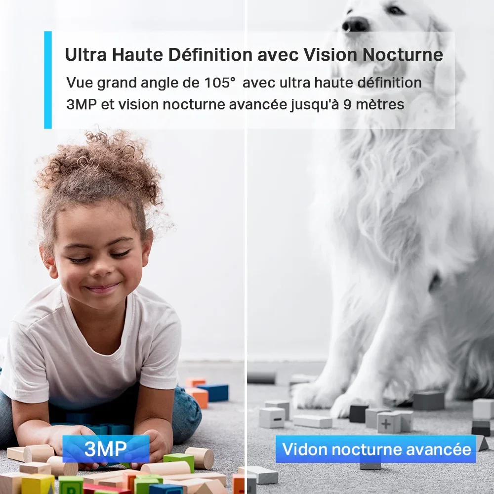 La Tapo C110 est une caméra de surveillance intérieure Wi-Fi Full HD offrant une résolution ultra-claire de 3MP pour une sécurité domestique optimale. Elle dispose d'une vision nocturne IR jusqu'à 9 mètres et d'un champ de vision horizontal de 105°, assurant une surveillance efficace jour et nuit.