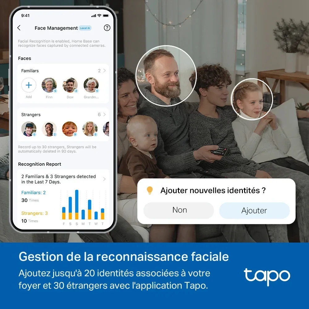 La caméra de surveillance intérieure connectée Tapo C260 offre une sécurité domestique avancée avec sa résolution Ultra HD 4K et sa couverture à 360°. Dotée d'une intelligence artificielle pour la détection et la reconnaissance faciale, elle assure une surveillance précise et personnalisable.