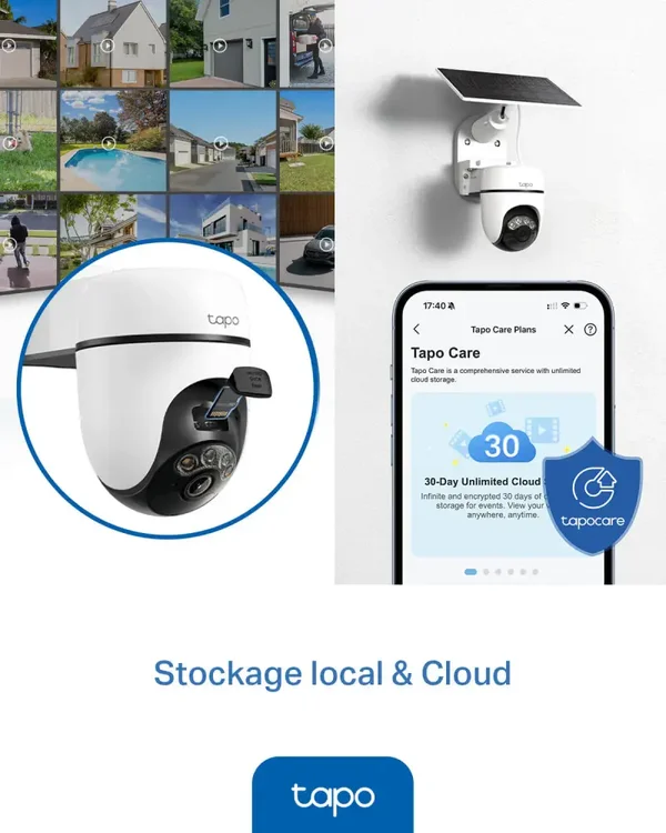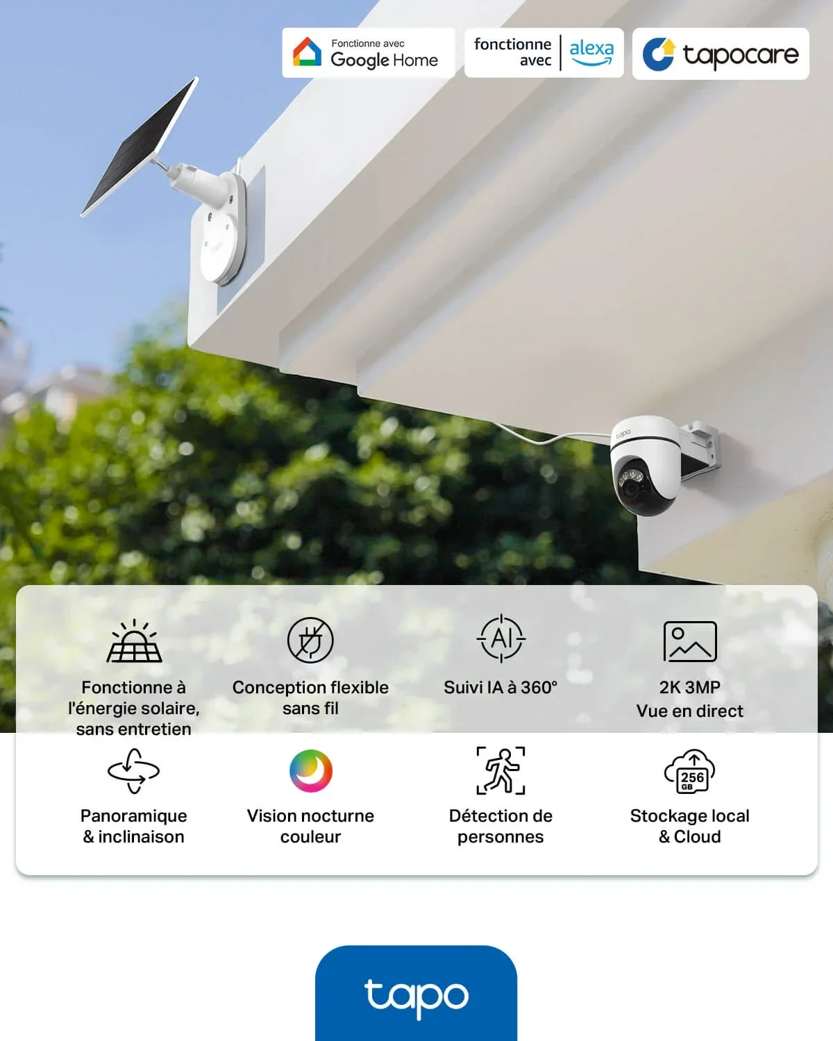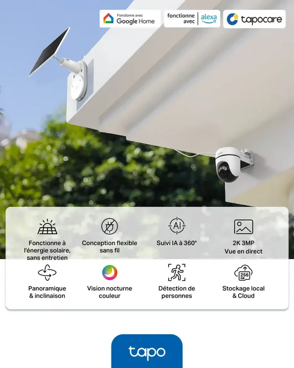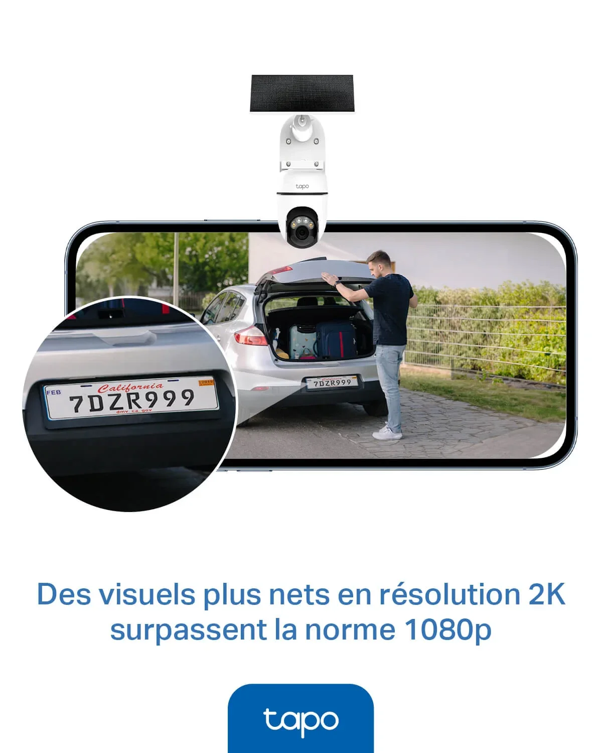La caméra de surveillance Tapo C610 KIT offre une sécurité intelligente avec son panneau solaire intégré et sa vision nocturne en couleur.