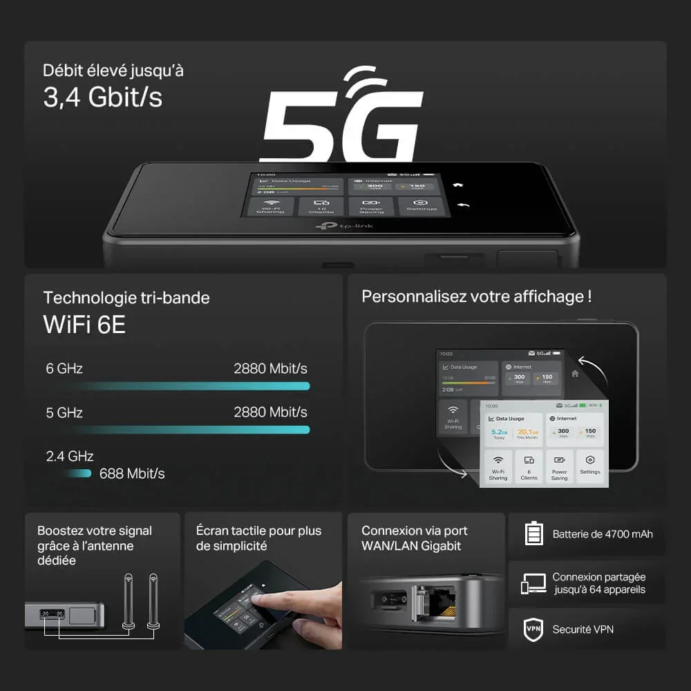 Routeur 5G Nomade WiFi 6E 3,6 Gbits - TP-Link M8550